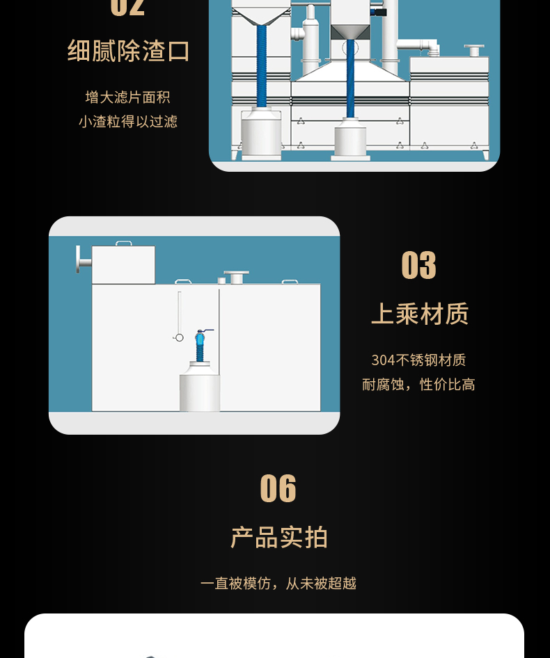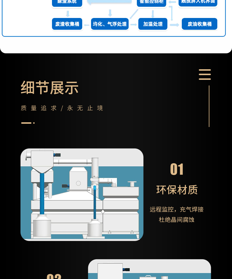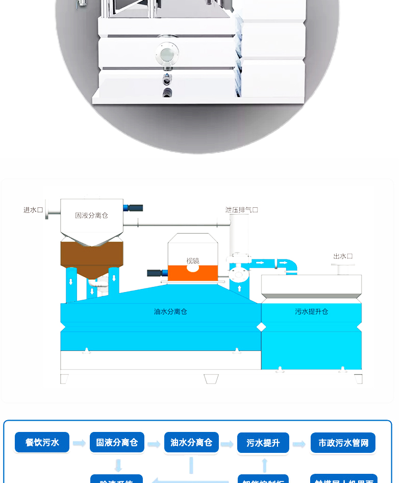 ALPY餐飲油水分離器為全自動(dòng)產(chǎn)品,標(biāo)準(zhǔn)配置包含自動(dòng)除渣、自動(dòng)油水分離、渣桶過重報(bào)警、自動(dòng)反沖洗、自動(dòng)強(qiáng)排、自動(dòng)恒溫、自動(dòng)排泥、輔助水箱、自動(dòng)液位功能、全自動(dòng)控制柜控制,無需人工值守。適用于中、大型餐飲服務(wù)企業(yè)、商業(yè)廣場(chǎng)、酒店等.用于室內(nèi)安裝。