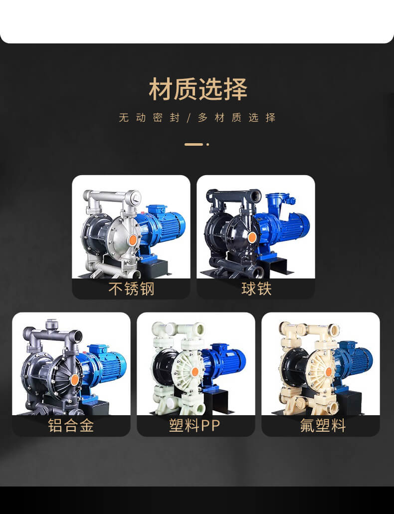 DBY 型電動(dòng)隔膜泵是一種新型的泵類,近年來,在隔膜材質(zhì)上取得了突破性的進(jìn)展。本泵應(yīng)用于石化、陶瓷、冶金等行業(yè),這種泵的主要特點(diǎn)是不需灌引水。直徑在10毫米以下的顆粒、泥漿等均可以毫不費(fèi)力地通過。由于隔膜將被輸送介質(zhì)和傳動(dòng)機(jī)械件分開,所以介質(zhì)絕對(duì)不會(huì)向外泄漏,且泵本身無軸封,使用壽命大大延 長(zhǎng)。根據(jù)不同介質(zhì),隔膜分為氯醇橡膠、氟橡膠、丁晴橡膠等,完全可以滿足不同用戶的要求。