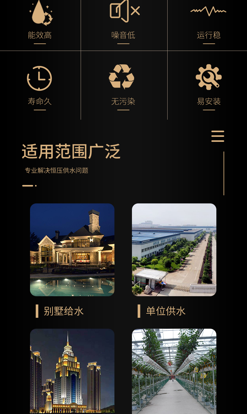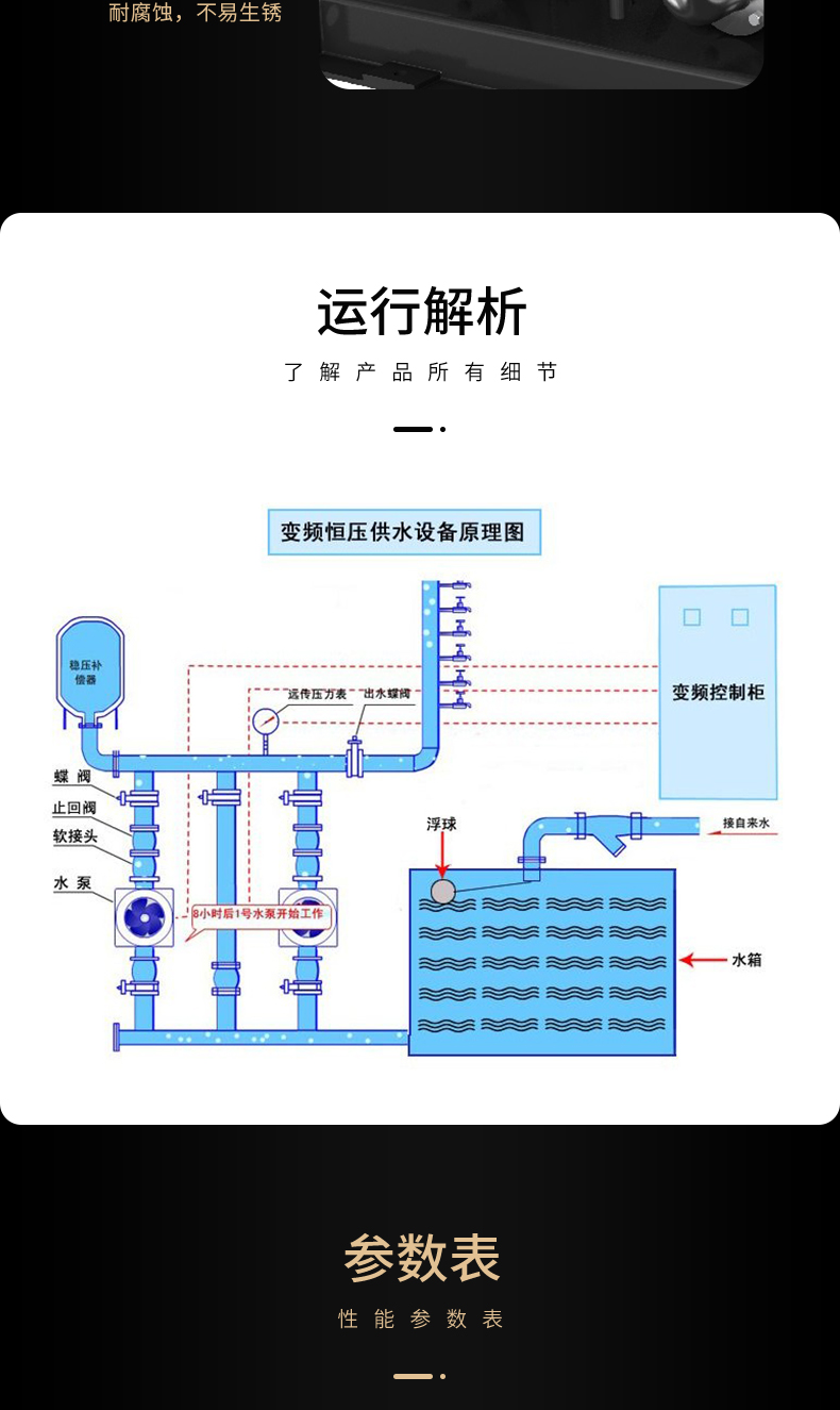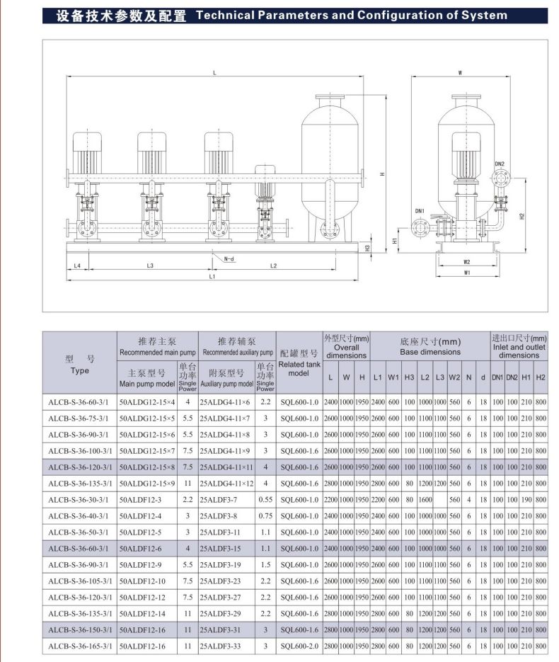 ALCB-S恒壓變頻供水設(shè)備是由最新性能ALBK變頻控制柜和2臺(tái)以上水泵并聯(lián)組成的尖端加壓供水設(shè)備,能夠自動(dòng)調(diào)節(jié)以滿(mǎn)足用戶(hù)的恒壓變量供水要求,供水管網(wǎng)壓力保持恒定,整個(gè)供水系統(tǒng)始終保持高效節(jié)能的最佳狀態(tài)。供水方式有變頻供水和壓力供水兩種,變頻供水是自動(dòng)調(diào)節(jié)某臺(tái)水泵的轉(zhuǎn)速或多臺(tái)水泵投入\退出運(yùn)行,使供水管網(wǎng)壓力保持恒定的理想供水方式,操作簡(jiǎn)單。
