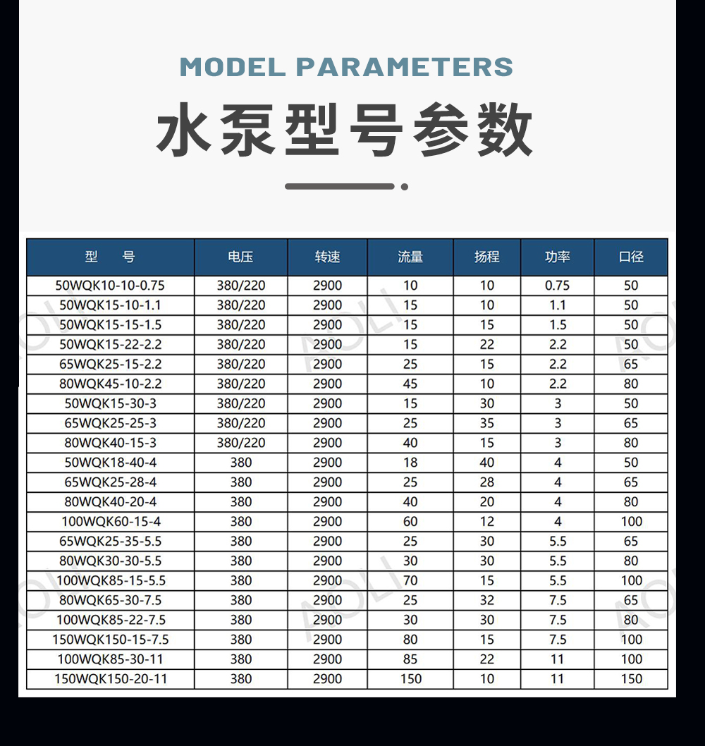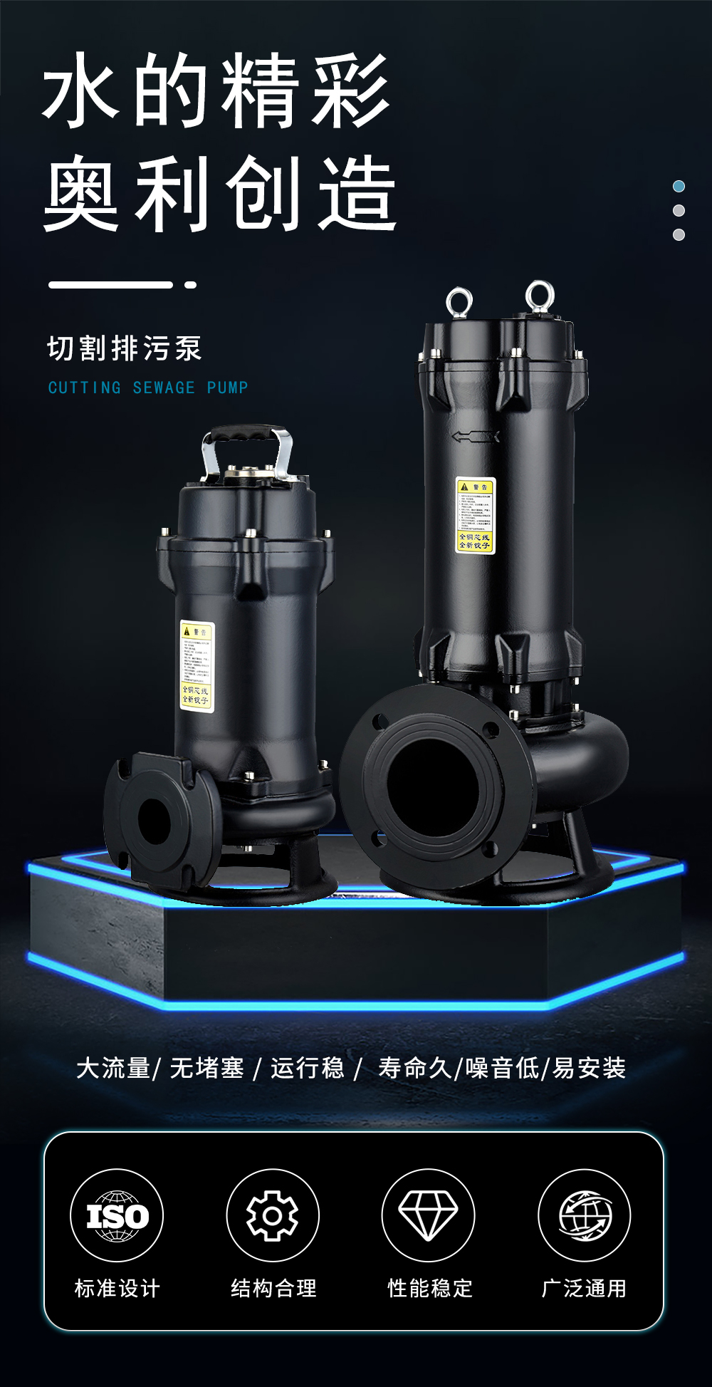 WQK/QG帶切割裝置排污泵具有排污通過(guò)能力特別強(qiáng),帶切割性能好,能將污水中的長(zhǎng)纖維、塑料、紙、帶、布條、稻草、繩子等雜質(zhì)切碎后排出,采用最先進(jìn)的方法,設(shè)計(jì)成最合理的水力特性,使電泵可以全揚(yáng)程運(yùn)行,優(yōu)良的干式電機(jī)和水泵的最佳組合,無(wú)堵塞排污泵使電泵的總效率達(dá)到西德abs公司的ass帶切割裝置系列產(chǎn)品相同,電泵采用高質(zhì)量的硬質(zhì)合金,雙端面機(jī)械密封和骨架油封組面部位,不得超過(guò)電動(dòng)機(jī)高度的1/2,抽送污物溫度不超過(guò)60℃。