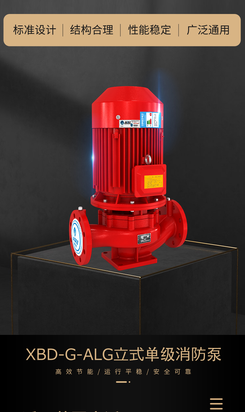XBD-ALG立式單級(jí)消防泵是一種消防用具,供輸送不含固體顆粒的清水及物理化學(xué)性質(zhì)類似于水的液體之用,主要用于消防系統(tǒng)管道增壓送水和各種場(chǎng)合的消防給水(消防栓滅火系統(tǒng)、自動(dòng)噴淋滅火系統(tǒng)和水噴霧滅火系統(tǒng)等),也可適用于工業(yè)和城市給排水,高層建筑增壓送水、遠(yuǎn)距離送水、采暖、浴室、鍋爐冷暖水循環(huán)、增壓空調(diào)制冷系統(tǒng)送水及設(shè)備配套等場(chǎng)合。
