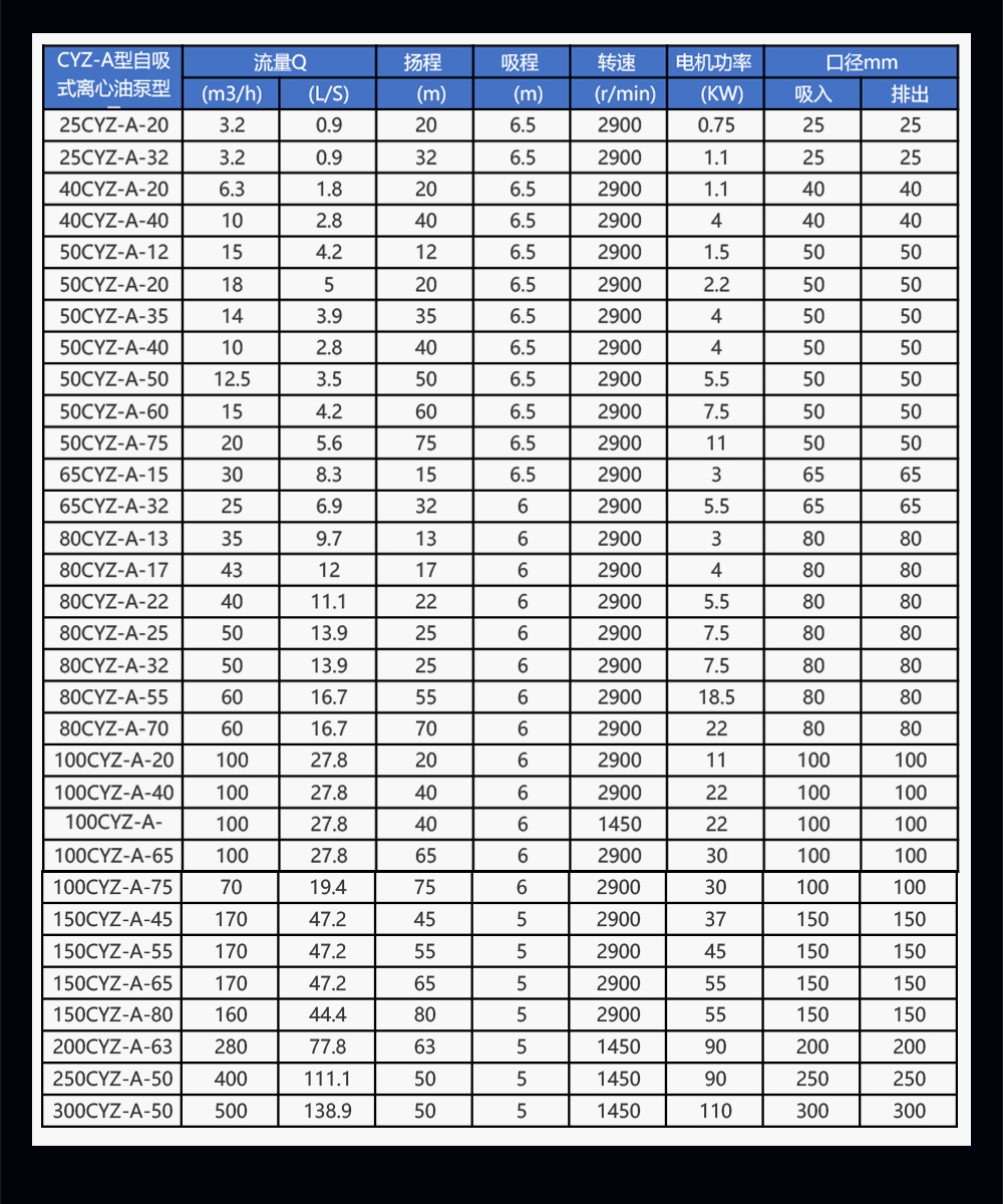 CYZ-A型自吸式自吸泵是 根據(jù)國(guó)內(nèi)外有關(guān)技術(shù)資料經(jīng)消化、吸收、改進(jìn)后研制而成的最新泵類(lèi)產(chǎn)品,該自吸泵適用于石油行業(yè)、陸地油庫(kù)、油罐車(chē)的理想產(chǎn)品,并適合于作船用貨油泵、艙底 泵、消防泵和壓載泵及機(jī)器冷卻水循環(huán)等,分別輸送汽油、煤油、柴油、航煤等石油產(chǎn)品和海水、清水,介質(zhì)溫度-20℃-80℃,如輸送化工液體可改用耐腐蝕 機(jī)械密封。